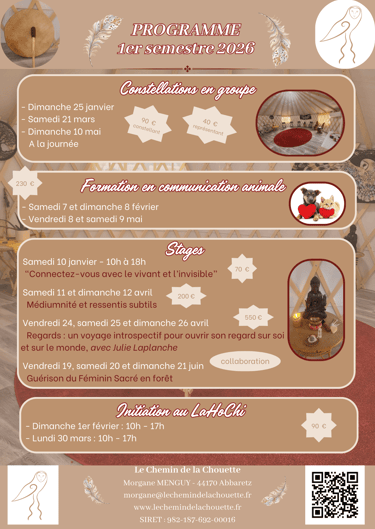 Planning des évènements au Chemin de la Chouette - 1er semestre 2026