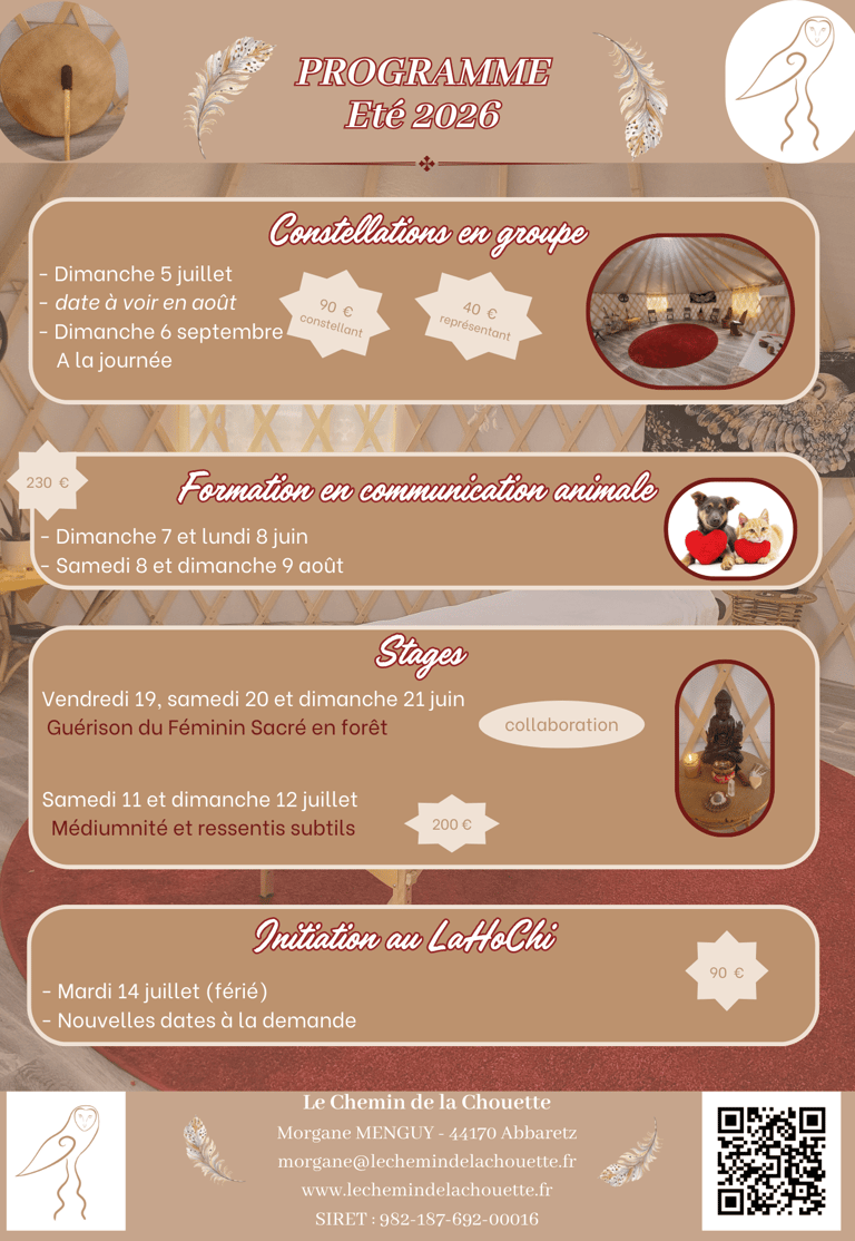 Ce que je vous propose au Chemin de la Chouette est de vous accompagner à cheminer vers qui vous êtes profondément, une fois libéré(e) de vos blessures et de vos blocages, afin que vous retrouviez votre souveraineté, et le pouvoir sur votre vie.