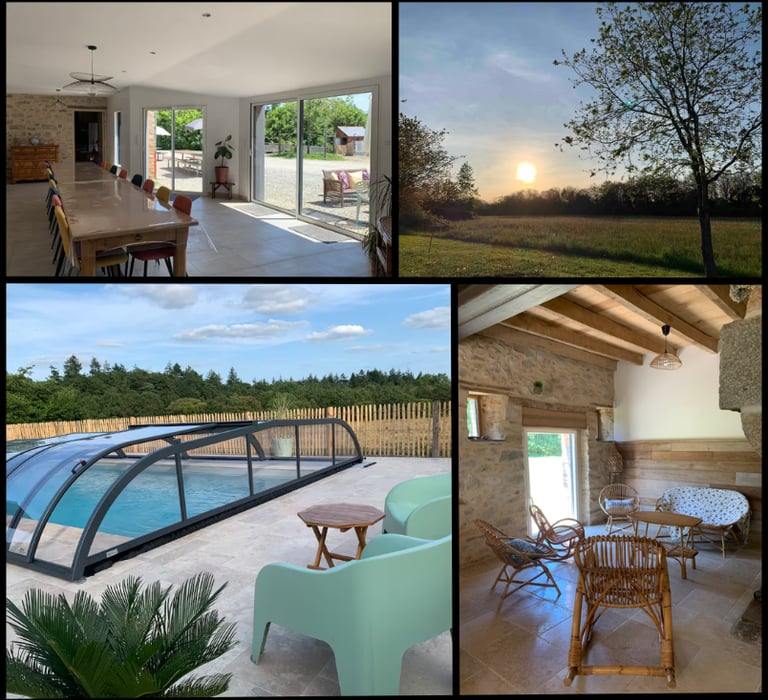 - Hébergement inclus avec : chambre individuelle, piscine privée chauffée, 18 ha de campagne autour du gîte, nord 44